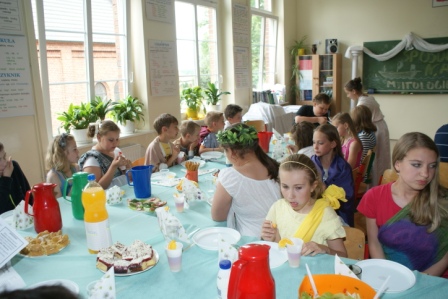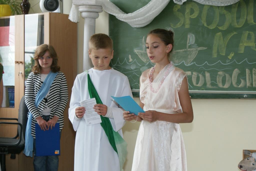 Uczniowie klasy IV 31 maja 2014 r. podsumowali swoją pracę nad projektem "Sposób na mitologię", którym zajmowali się podczas zajęć sobotnich w ramach projektu Fascynujący Świat Nauki i Technologii. Przy pomocy rodziców przygotowali kostiumy, elementy dekoracji i niektóre potrawy. Zupełnie samodzielnie przyrządzili zdrowe, smaczne przekąski i nadali im mitologiczne nazwy oraz nakryli do stołu. Zaprezentowali scenki teatralne, piosenki, prace plastyczne oraz numer specjalny gazetki pt.: ,,Wieści z Itaki".