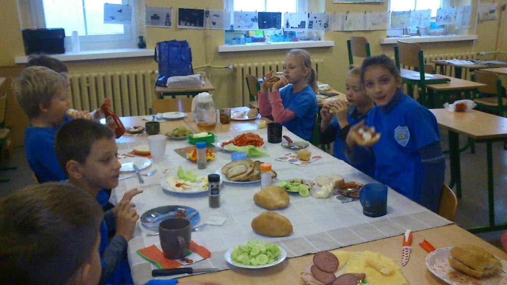 W bieżącym roku szkolnym 2014/2015 wyjątkowo Dzień Śniadanie Daje Moc obchodzono w piątek – 7.11.2014. Uczniowie wszystkich klas zorganizowali śniadanie w swojej klasie i wspólnie przygotowali i zjedli najważniejszy posiłek dnia. Dzieciaki miały frajdę nie tylko z dzielenia się z innymi, ale także spróbowały nowych smaków, dowiedziały się, co lubią na śniadanie inne dzieci i dlaczego właściwie śniadanie jest takie ważne. Przykład, który może przemówić do wyobraźni dzieci? Samochód bez benzyny nie zabierze nas na wycieczkę, a uczeń bez śniadania nie będzie miał siły do zabawy i nauki. Jednemu i drugiemu potrzebne jest „paliwo”.