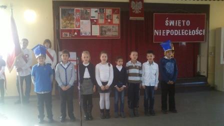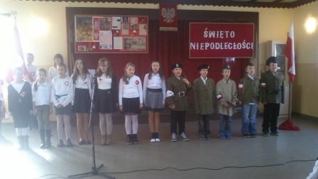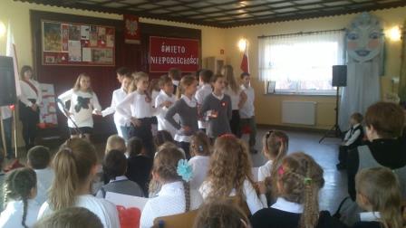 Rocznicę odzyskania niepodległości obchodziliśmy w naszej szkole 13 listopada, ale przygotowania do święta rozpoczęły się dużo wcześniej. Wszystkie dzieci wykonały kotyliony w barwach narodowych, kompletowały kostiumy i rekwizyty do występów, uczyły się wierszy i piosenek o tematyce patriotycznej, ćwiczyły kroki poloneza oraz układały oryginalne życzenia dla Polski. Dzięki temu apel był udany i nikt się podczas występów nie nudził.
