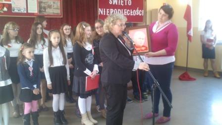 Na zakończenie pani Zuzanna Woźnica przekazała szkole w imieniu Stowarzyszenia Civitas Christiana w Piotrówce obraz Jana Pawła II namalowany przez naszą uczennicę Angelikę Zgubisz podczas warsztatów malarskich prowadzonych przez K. Skut.
