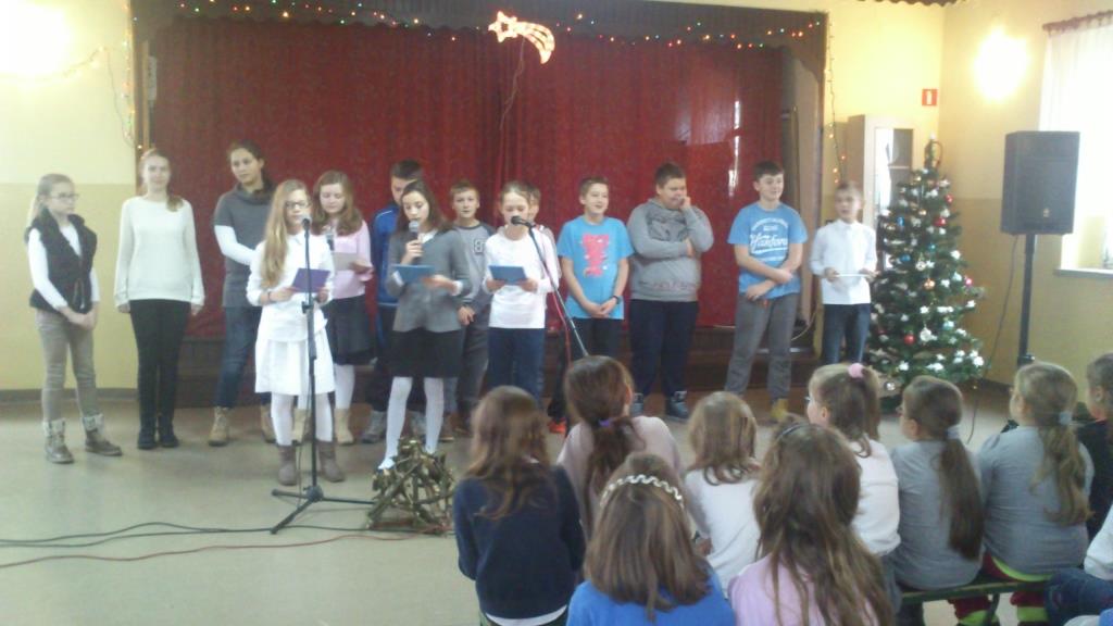W czwartek 18 grudnia jak co roku odbył się świąteczny apel przygotowany pod opieką nauczycieli Darii Kotas i Mariusza Cierpicha. Uczniowie każdej klasy zaśpiewali wybraną kolędę. Zaprezentowali również jasełka, a pani dyrektor Barbara Prokopiak złożyła wszystkim świąteczne życzenia.