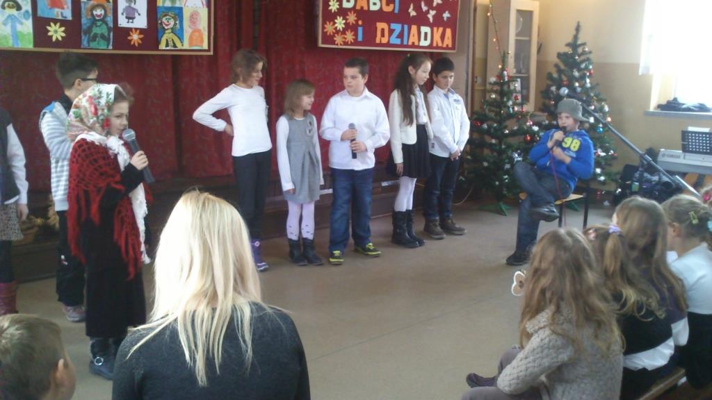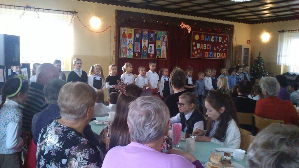 15 stycznia w naszej szkole odbyła się uroczystość z okazji święta Babci i Dziadka. Uczniowie kl. I-III zaprosili do sali LZS-u swoich ukochanych dziadków. Dla nich recytowali wiersze i śpiewali piosenki wychwalając ich mądrość, dobroć i miłość. Rodzice uczniów przygotowali dla wszystkich słodki poczęstunek.