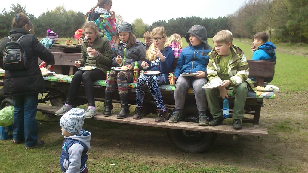 W poniedziałek 25 kwietnia uczniowie naszej szkoły razem z panem myśliwym Tomaszem Horoszczakiem udali się do pobliskiego lasu. Celem wyprawy była pomoc przy sprzątaniu śmieci znajdujących się na terenach leśnych. Wszyscy uczestnicy akcji zdziwieni byli na widok tak ogromnych ilości zanieczyszczeń znajdujących się w lasach w naszej okolicy. Na koniec pracy uczestnicy mogli posilić się kiełbaskami upieczonymi na ognisku.