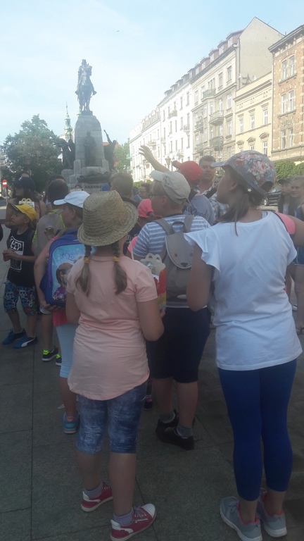 20 czerwca uczniowie klas IV-VI oraz ośmioro dzieci z klasy III pojechały na wycieczkę do Krakowa. Tam zwiedziły: Zamek na Wawelu i Katedrę, Groby Królewskie, Dzwon Zygmunta, Smoczą Jamę, Rynek Główny na którym znajduje się pomnik Mickiewicza, Sukiennice wraz z interaktywnym muzeum Podziemi Rynku Głównego, Kościół Mariacki, Kościół Św. Floriana, Plac Matejki z Pomnikiem Grunwaldzkim, Barbakan i Bramę Floriańską. Pomimo dużego upału wszyscy uczestnicy wycieczki z zaciekawieniem słuchali opowieści przewodnika. Był też czas na indywidualne spacery po Starym Mieście, zakup pamiątek, lodów i zjedzenie posiłku w McDonald’s. Wszyscy uczestnicy imprezy wrócili zdrowi i pełni wrażeń.