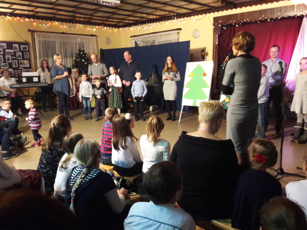 W drugiej części uroczystości zaprosiliśmy część uczniów ze swoimi rodzicami na konkurs rodzinny dotyczący wiedzy na temat świąt. Wszyscy świetnie się przy tym bawiliśmy, a przy okazji dowiedzieliśmy się co nieco na temat świąt bożonarodzeniowych w innych krajach.