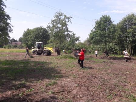 W sobotę 9 czerwca nauczyciele wspólnie z rodzicami uczniów porządkowali teren przeznaczony na szkolny skwer edukacyjny. Z wielkim entuzjazmem i zaangażowaniem grabili, wycinali i wynosili zalegające tam gałęzie. Nikt się nie oszczędzał dla wspólnego celu. Na miejscu pracował również sprzęt ciężki – koparka i traktor obsługiwane przez rodziców.