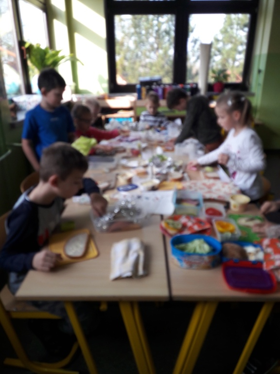 Po raz kolejny uczniowie klas młodszych brali udział w ogólnopolskiej akcji promującej zdrowe odżywianie. W bieżącym roku szkolnym śniadaniowe święto było obchodzone w czwartek – 8 listopada. Dzieci z klasy I i II samodzielnie przygotowały zdrowe śniadanie i wspólnie zasiadły do stołu. Celem akcji jest zwrócenie uwagi na znaczenie spożywania porannych posiłków.