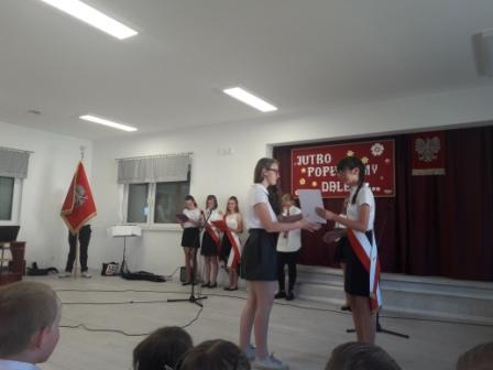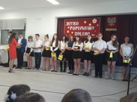 W środe przed Bożym Ciałem wszyscy zebraliśmy się na apelu kończącym rok szkolny. Po dwudziestoletniej przerwie szkołę pożegnali uczniowie klasy ósmej. Była to bardzo doniosła i wzruszajaca chwila w życiu absolwentów i całej społeczności szkolnej. Uczniowie klasy VII z żalem pożegnali swych starszych kolegów. Jest to też moment w którym podsumowuje się cały miniony rok szkolny. Uczniowie z najwyzszymi osiągnięciami edukacyjnymi zostali oficjalnie wyróżnieni i nagrodzeni. A teraz dla wszystkich uczniów i nauczycieli rozpoczął się czas odpoczynku - WAKACJE.