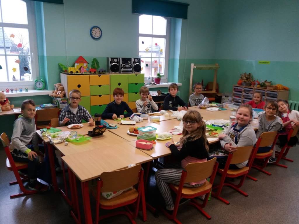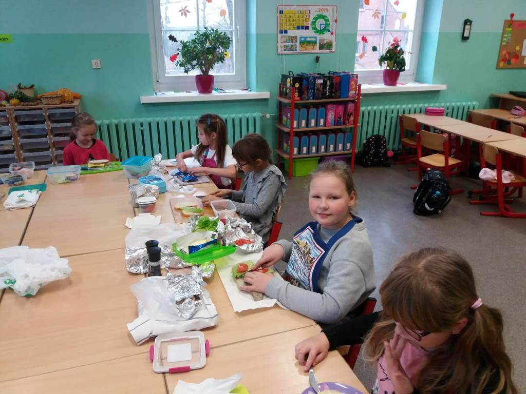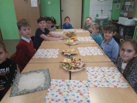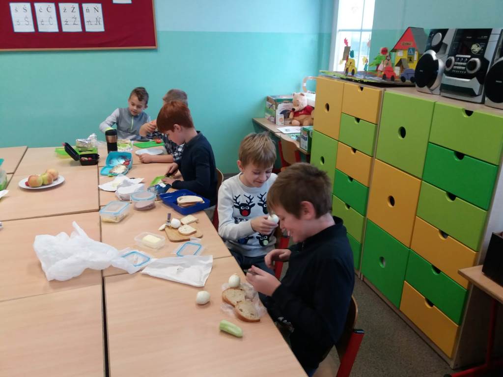 29 listopada uczniowie klas I-III zorganizowali zdrowe i pożywne śniadanie. Wspólnie przygotowali posiłek zgodnie z zasadami zdrowego żywienia. Następnie w miłej i kulturalnej atmosferze zasiedli do posiłku.