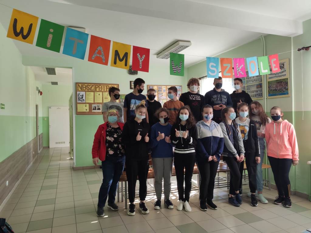 Po ośmiu miesiącach nauki zdalnej do szkoły powrócili uczniowie. 17 maja w szkolne progi zawitali uczniowie kl. IV i VI, a 24 maja uczniowie kl. VII i VIII. Nareszcie wszyscy mogli sie zobaczyć i wspólnie spędzać czas nauki i zabawy.
