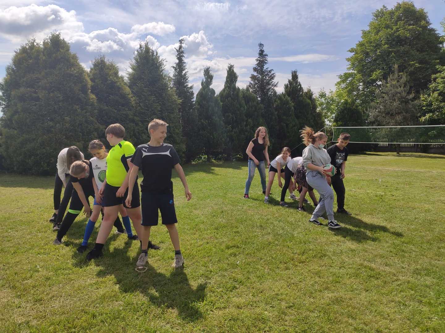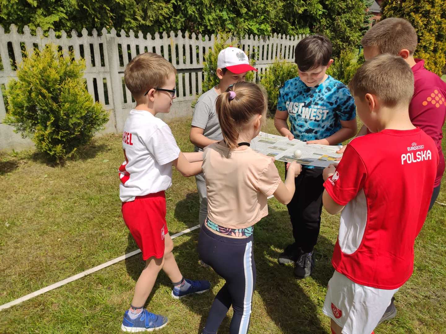 1 czerwca po powrocie wszystkich uczniów do nauczania stacjonarnego obchodziliśmy radośnie i aktywnie Święto Szkoły. Wcześniej wszystkie klasy przygotowały przebrania oraz hasła zagrzewające do sportowej walki i zabawy oraz przygotowały plakaty „Dalsze losy bohaterów utworów K.Makuszyńskiego”. Następnie na placu szkolnym odbyła się niezwykła prezentacja ufoludków, sportowców, piłkarzy, agentów…. Po ustaniu śmiechów i żartów, zmianie kostiumów każda klasa miała za zadanie odwiedzić siedem stanowisk, których opiekunowie przygotowali dla nich różne aktywności. W ten sposób w sali matematycznej u pani Darii dzieci poznały lub przypomniały sobie prawa ucznia i dziecka, historię wsi w budynku Stowarzyszenia Odnowy Wsi Piotrówka, a pod dębem na szkolnym podwórku na wszystkich czekał Koziołek Matołek (p.A.Piotrowska) i zapraszał do gry „Śladami K.Makuszyńskiego”. Starsi uczniowie rywalizowali w siatkówce, młodsi zagrali w zbijaka. Były kiełbaski i lody, a pogoda dopisała. To był udany dzień.