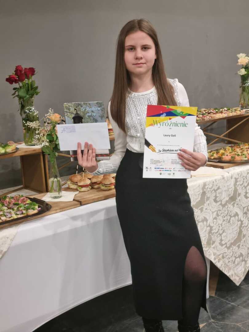 Uczennica klasy piątej Laura Gola niedawno wzięła udział w XXX Regionalnym Konkursie Literackim "Ze Śląskiem na ty". Za pracę "Mój praołpa muzykant" otrzymała wyróżnienie.