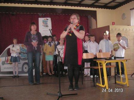 Dziękujemy serdecznie za ten szczególny dzień w naszej szkole Pani lektor Małgorzacie Urlich-Kornackiej oraz nauczycielom języka niemieckiego pani Joannie Szłapa-Maczurek organizatora przyjazdu Deutsch-Wagen i Pani Ewie Piszniok, która wraz z uczniami przygotowała program artystyczny.