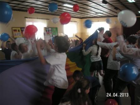 Po występach rozpoczęły się warsztaty w dwóch grupach, prowadzone przez Panią lektor. Warsztaty te dla uczniów szkoły były prawdziwą i niezapomnianą przygodą z językiem niemieckim. Dzieci wraz z prowadzącą wybrały się w podróż krajoznawczą, poznając przy tym tradycje i zwyczaje różnych regionów Niemiec. Jedną z wielu zabaw warsztatowych, która okazała się największą radością dla uczniów, gdzie wykazali się bardzo dużą wiedzą, ze względu na swoje ogromne i aktywne zainteresowanie piłką nożną, był mecz dwóch najlepszych drużyn piłkarskich reprezentacji Niemiec Borussi Dortmund i Bayern Monachium. Po tej zabawie radośni uczniowie jednogłośnie okrzyknęli, że nauka języka niemieckiego może być prawdziwą przyjemnością.