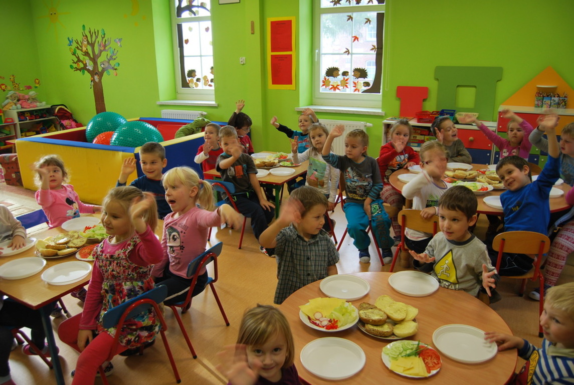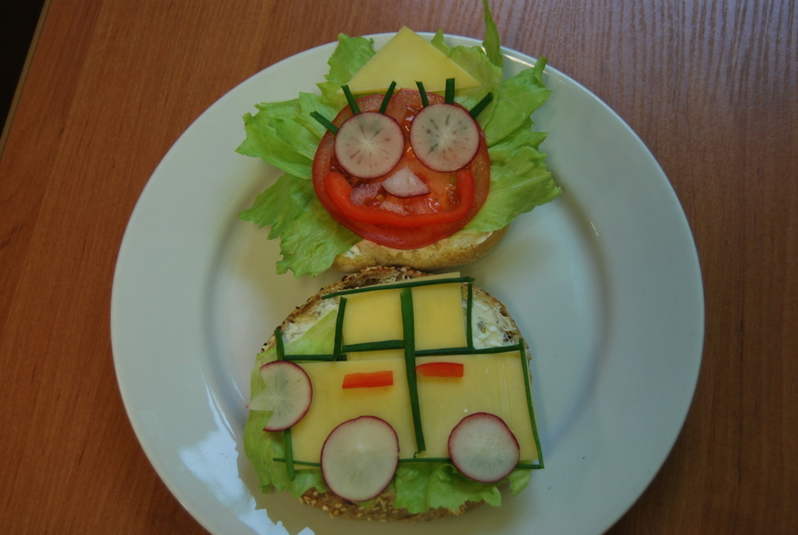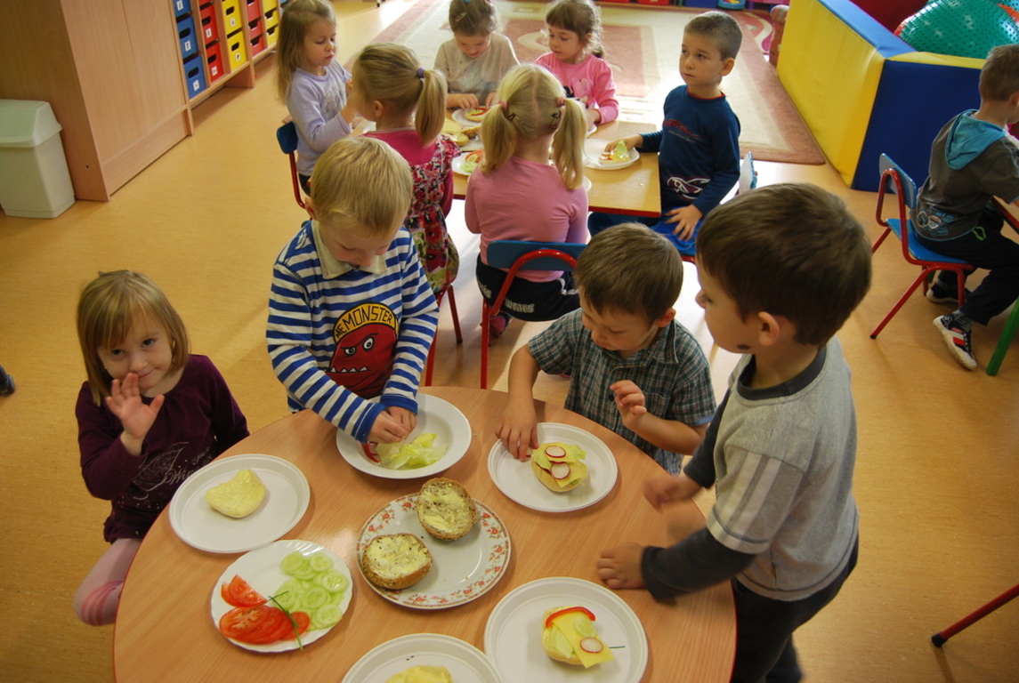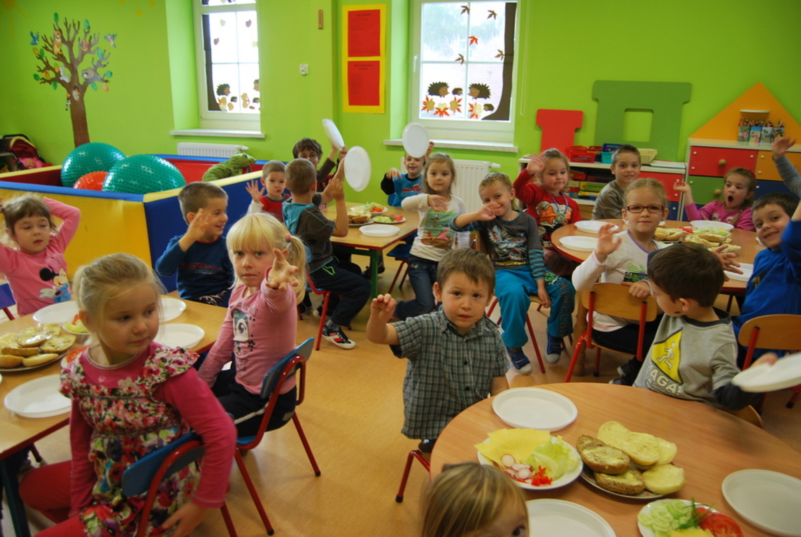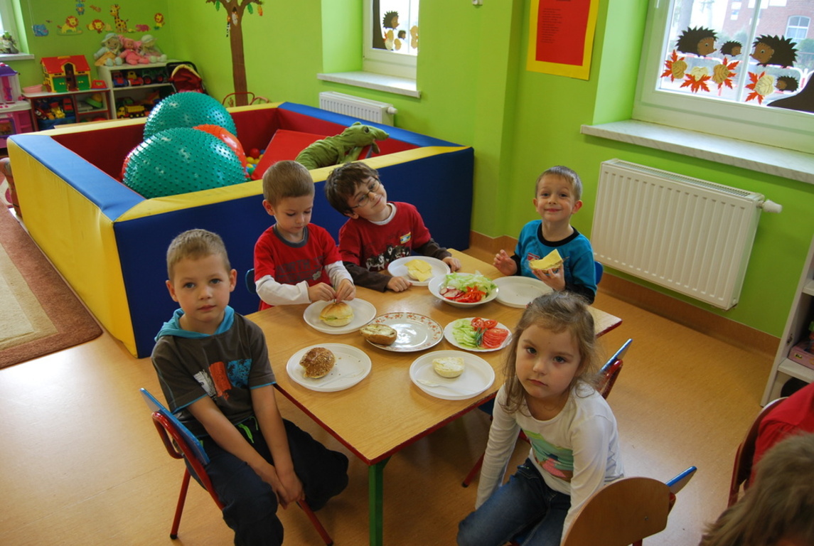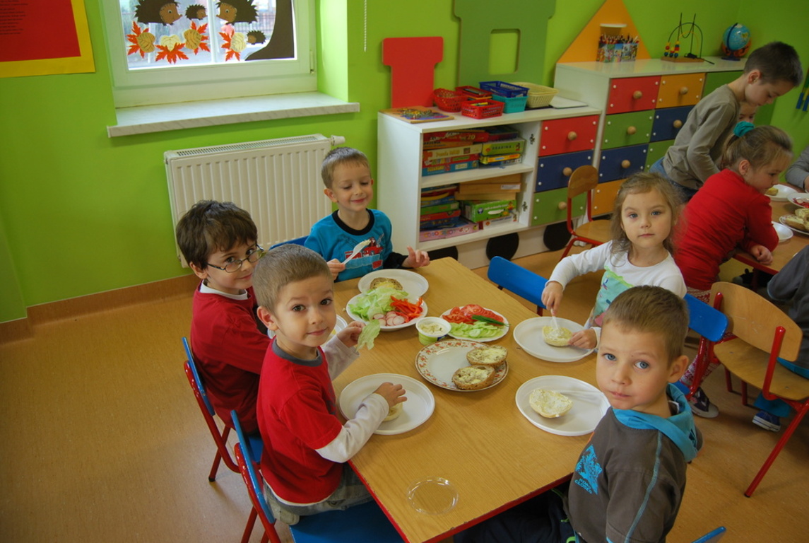 Kolejno dzieci miały okazję wysłuchać ciekawej pogadanki na temat zdrowego stylu życia pod hasłem "Odżywiaj się tak, by nie dopadł cię rak". Poprzez zabawy i konkursy przedszkolaki uświadomiły sobie jak ważna jest wysoka wartość odżywcza produktów które spożywamy. Dzieci zrozumiały, że prawidłowe żywienie jest jednym z czynników, które mogą wspomagać walkę z drobnoustrojami, wzmacniać odporność oraz przyspieszać rekonwalescencję. Przedszkolaki z dużym entuzjazmem przygotowywały własne, kolorowe, a przede wszystkim zdrowe kanapki.