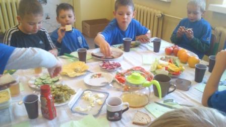 8 listopada, w Dniu Zdrowego Śniadania, wszyscy uczniowie naszej szkoły zorganizowali śniadanie w swojej klasie, aby móc wspólnie przygotować i zjeść najważniejszy posiłek dnia. Dzieciaki miały frajdę nie tylko z dzielenia się z innymi, ale także spróbowały nowych smaków, dowiedziały się, co lubią na śniadanie inne dzieci i dlaczego właściwie śniadanie jest takie ważne. Miłą niespodziankę przygotował dla każdej klasy Samorząd Uczniowski w postaci paczki z warzywami, owocami i pieczywem.