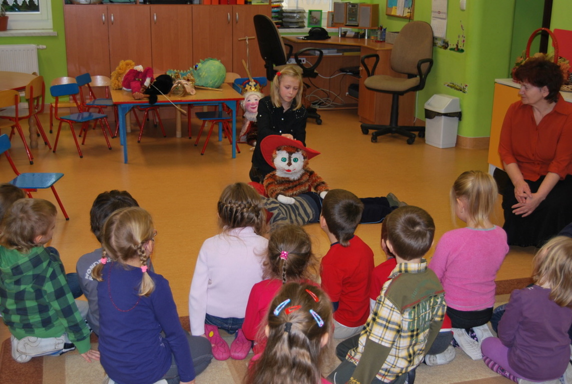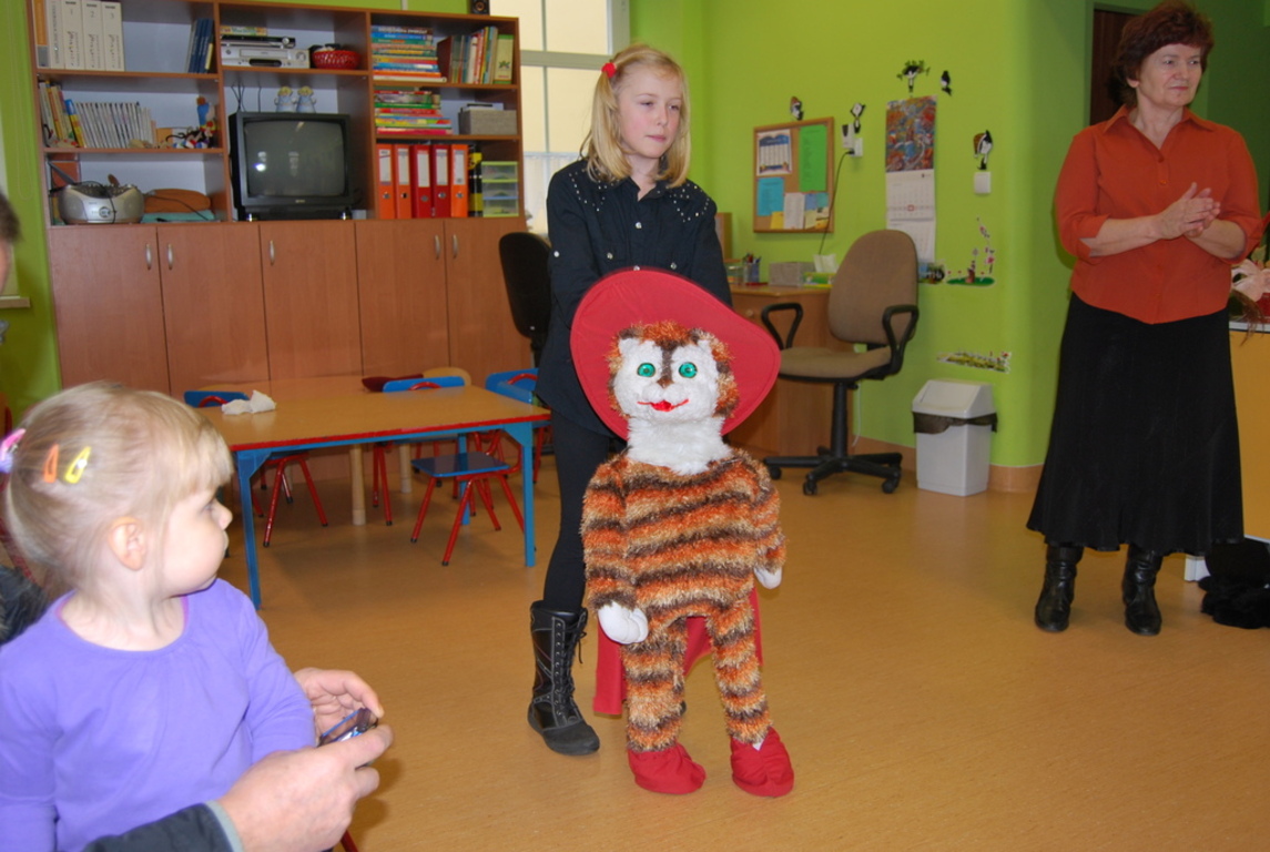 21 LISTOPADA 2013 r. mieliśmy okazję przenieść się w magiczny i wyjątkowy świat teatru. Gościliśmy w naszym przedszkolu panią Emilię Szpiech, która przybliżyła nam pojęcie teatru, zademonstrowała rekwizyty potrzebne do pracy w teatrze, jak również przedstawiła fragment widowiska o „Kocie w butach”. Raz jeszcze pragniemy podziękować pani Emilii Szpiech za gościnny występ i przybliżenie przedszkolakom niezwykłego rodzaju sztuki widowiskowej jaką jest teatr.